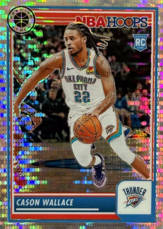 This card is 1 of 101 Cason Wallace's card variations in the 2023 Hoops Premium Stock set being tracked by Sports Card Investor, including Base, Rising Stars, Disco, Ice, and Multi Wave.