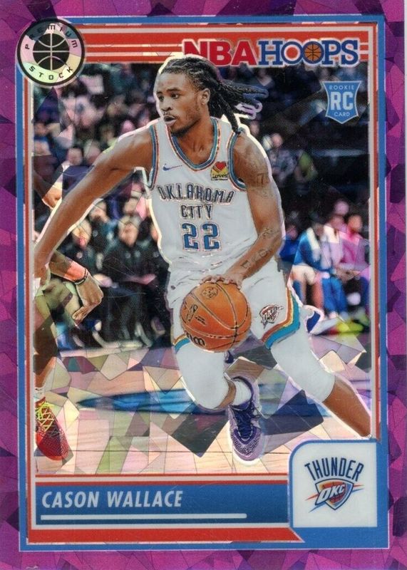 This card is 1 of 101 Cason Wallace's card variations in the 2023 Hoops Premium Stock set being tracked by Sports Card Investor, including Base, Rising Stars, Disco, Ice, and Multi Wave.