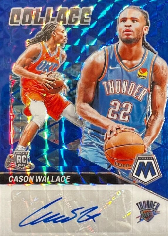 2023-24 Mosaic Cason Wallace Collage Auto RC Blue Rookie #14/49 Thunder