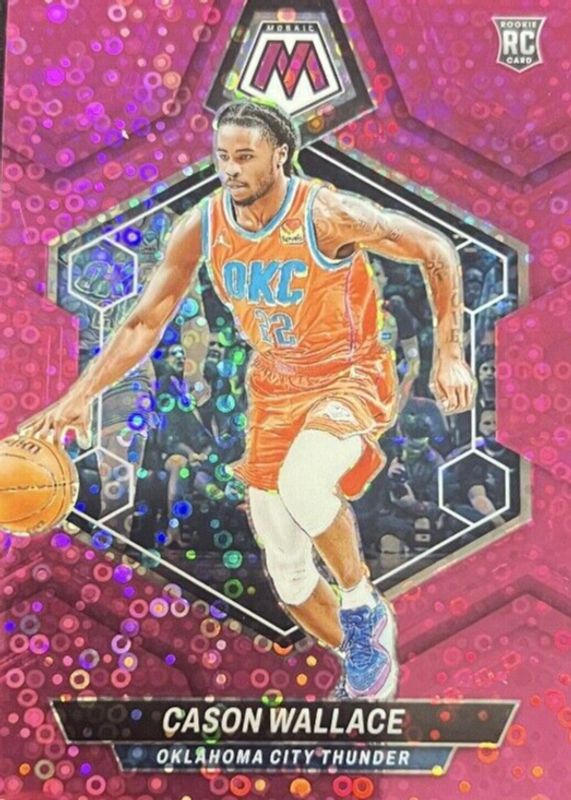 The Cason Wallace 2023 Mosaic #218 Fast Break Pink /20 Rookie card in Raw condition has not changed in price in the last 30 days and was last sold for $16.50 .