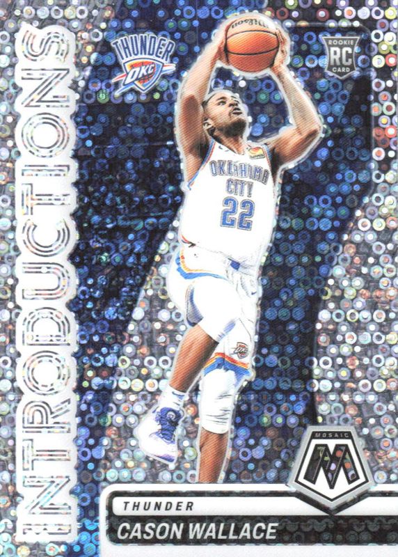 The Cason Wallace 2023 Mosaic #9 Introductions - Fast Break Rookie card in Raw condition has not changed in price in the last 30 days and was last sold for $2.05 .