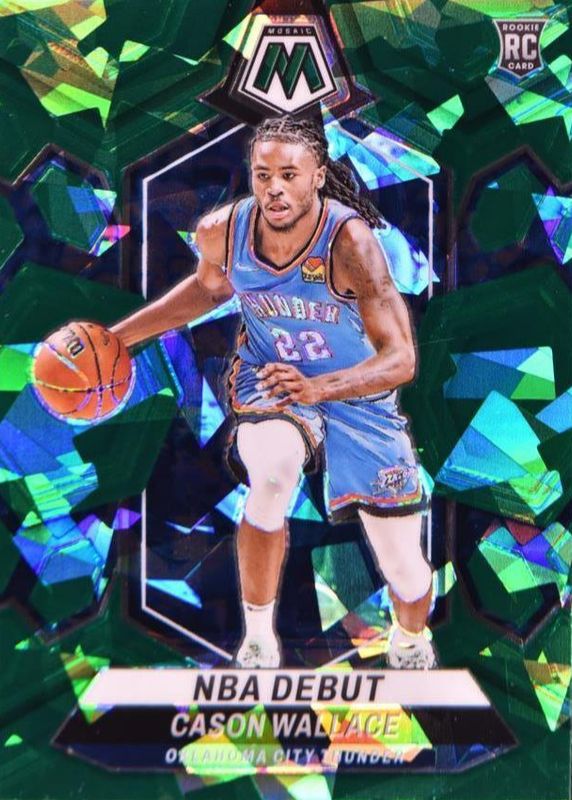 The Cason Wallace 2023 Mosaic #258 NBA Debut - Green Ice Rookie card in Raw condition has not changed in price in the last 30 days and was last sold for $4.00 .