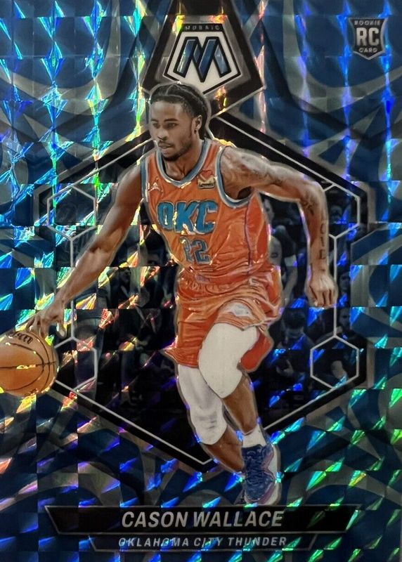 CASON WALLACE 2023-24 PANINI MOSAIC BLUE REACTIVE MOSAIC PRIZM ROOKIE RC 218