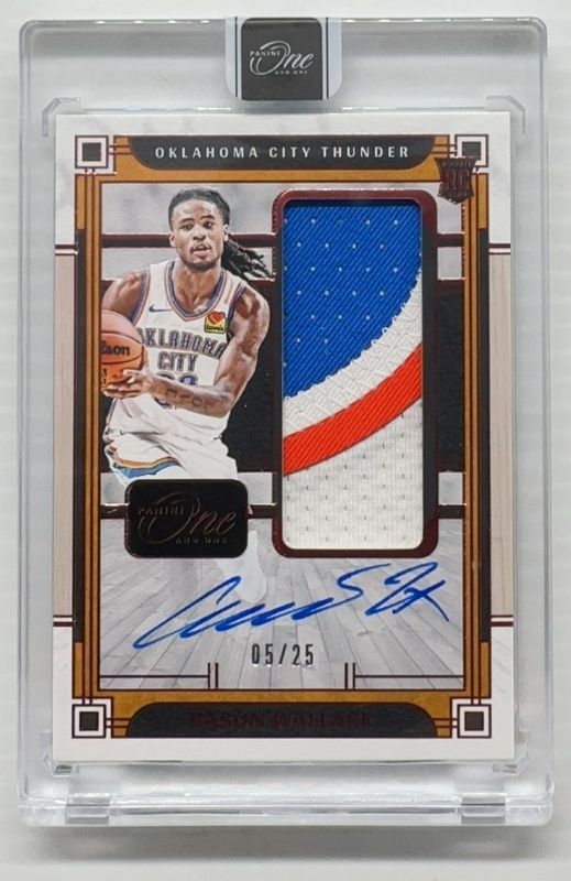 The Cason Wallace 2023 One and One #16 Rookie Jumbo Jersey Autographs - Purple /35 card is 1 of 31 Cason Wallace's card variations in the 2023 One and One set being tracked by Sports Card Investor, including Base /99, Blue /35, Purple /25, Red /15, and Gold /10.