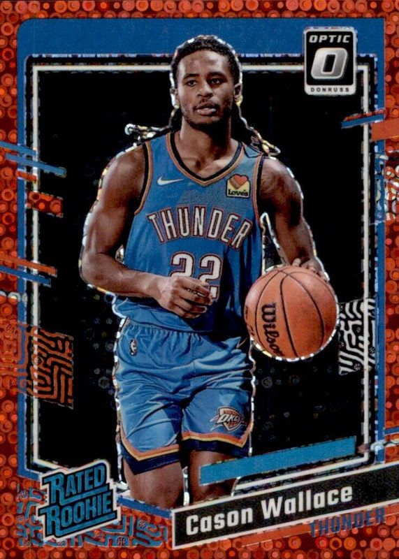 This card is 1 of 130 Cason Wallace's card variations in the 2023 Optic set being tracked by Sports Card Investor, including Base, Blue Velocity, Checkerboard, Choice, and Choice Red & Green.