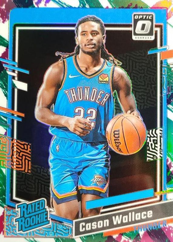 CASON WALLACE 2023-24 PANINI DONRUSS OPTIC #218 JAZZ PRIZM RATED ROOKIE RC SSP