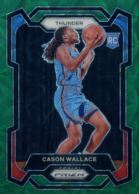 This card is 1 of 79 Cason Wallace's card variations in the 2023 Prizm set being tracked by Sports Card Investor, including Base, Blue Wave, Choice Blue Yellow Green, Fast Break, and Green.