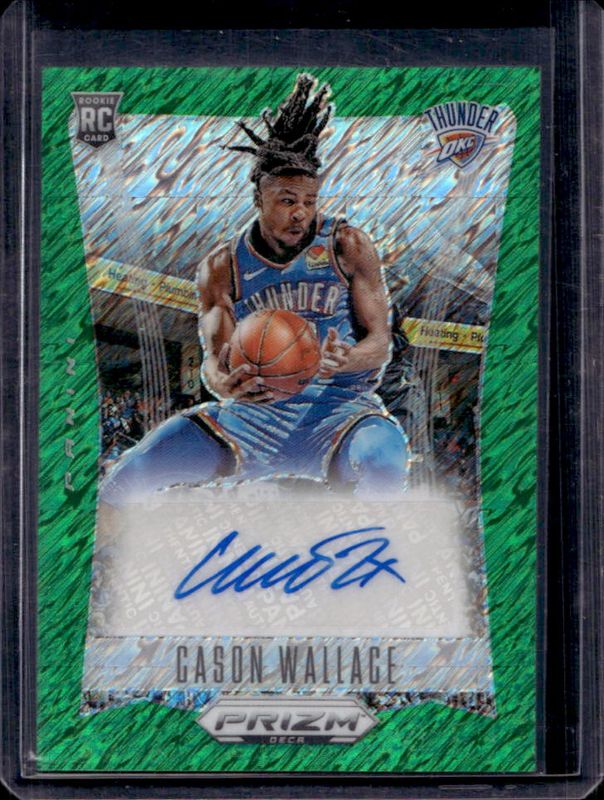 The Cason Wallace 2023 Prizm Deca #DS-CAS Signatures - Green Shimmer Rookie card is 1 of 22 Cason Wallace's card variations in the 2023 Prizm Deca set being tracked by Sports Card Investor, including Base, Silver, Red /199, Blue /149, and Purple /99.