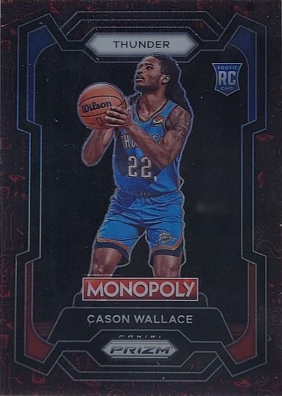 The Cason Wallace 2023 Prizm Monopoly #63 Monopoly Red Pattern Rookie card in Raw condition has not changed in price in the last 30 days and was last sold for $1.99 .