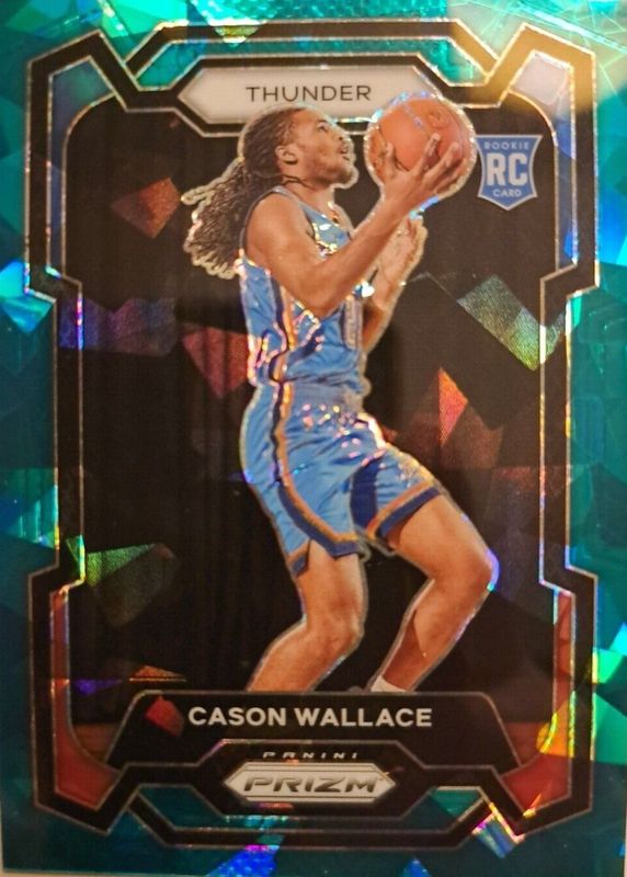 2023-24 Panini Prizm CASON WALLACE Teal Ice /225 RC Prizm Cracked Ice #139 OKC🔥