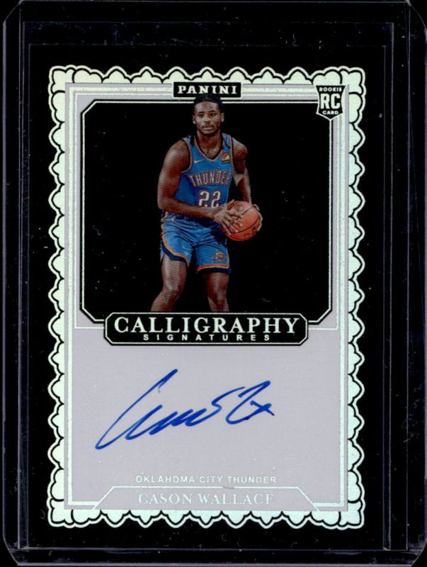 The Cason Wallace 2023 Revolution #CAL-CWL 2023 Calligraphy Rookie card is 1 of 64 Cason Wallace's card variations in the 2023 Revolution set being tracked by Sports Card Investor, including #102 Base, #102b Base, #102 Astro, #102b Blizzard, and #102 Blizzard.