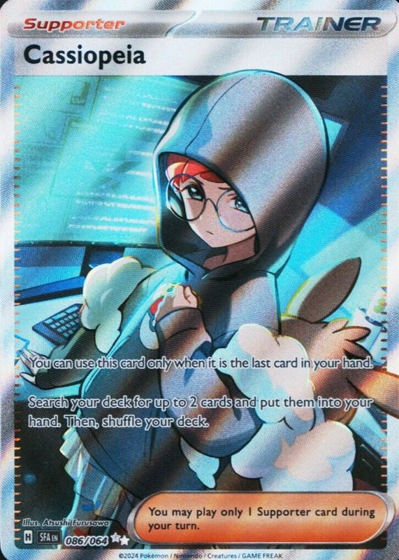 The Cassiopeia 2024 Scarlet & Violet: Shrouded Fable #086/064 Ultra Rare (Full Art) card in Raw TCG (Lightly Played) condition has moved down -$0.01 (-0.2%) in the last 30 days and was last sold for $4.99 .