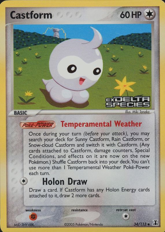 The Castform 2005 EX: Delta Species #034/113 Reverse Holo card in Raw TCG (Near Mint) condition has moved up $9.99 (+66.6%) in the last 30 days and was last sold for $24.99 .
