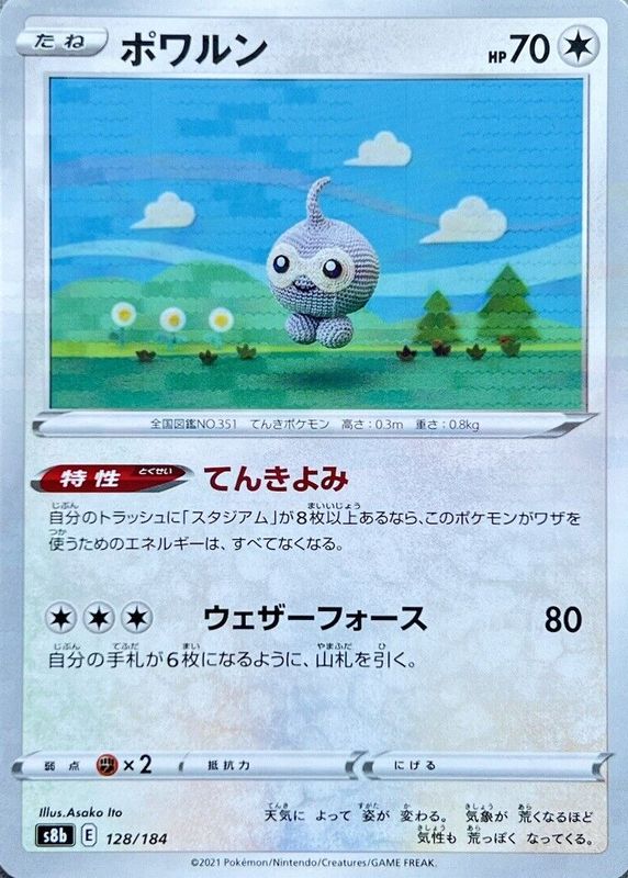 The Castform 2021 Japanese Sword & Shield: VMAX Climax #128/184 Reverse Holo card in Raw TCG (Near Mint) condition has not changed in price in the last 30 days and was last sold for $2.00 .