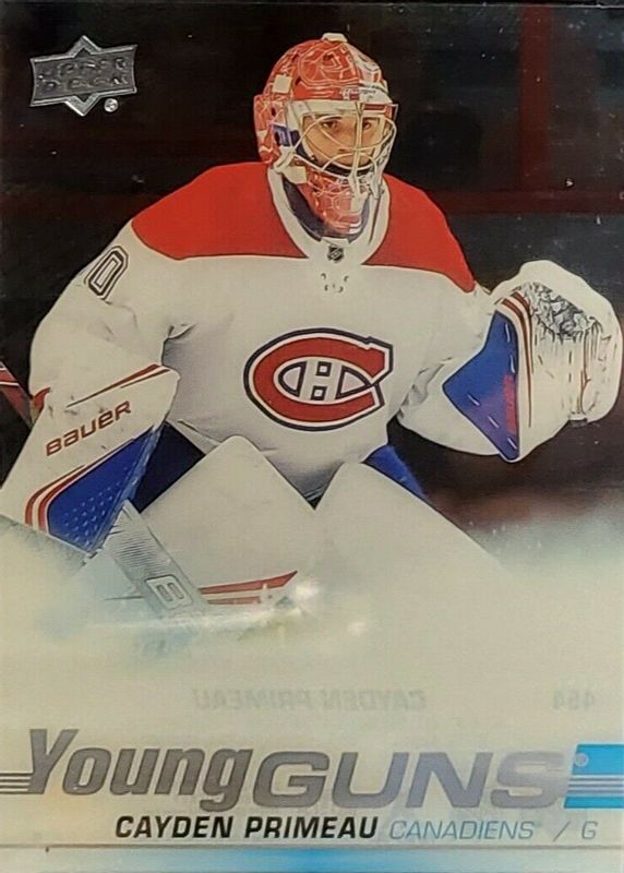 This card is 1 of 8 Cayden Primeau's card variations in the 2019 Upper Deck set being tracked by Sports Card Investor, including Young Guns Base, Young Guns Canvas, Young Guns - Clear Cut Exclusives, Young Guns - Silver Foil, and Young Guns - Speckled Rainbow Foil.