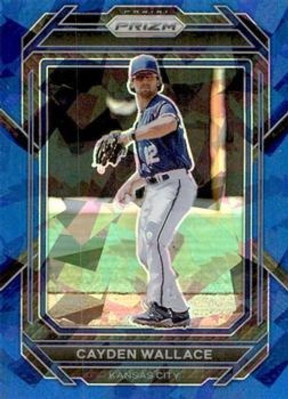 The Cayden Wallace 2023 Prizm #74 Blue Ice card is 1 of 44 Cayden Wallace's card variations in the 2023 Prizm set being tracked by Sports Card Investor, including Base, Giraffe, Green Ice, Hyper, and Ice.