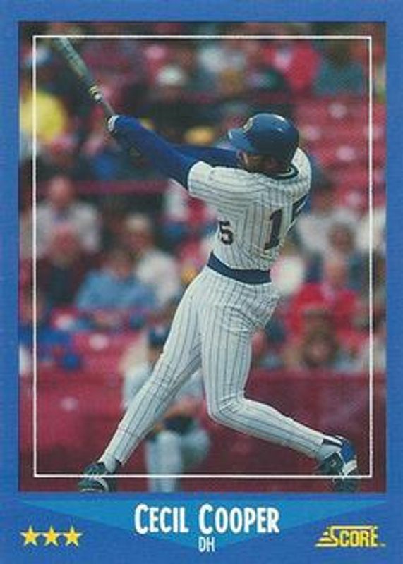The Cecil Cooper 1988 Score #169 Base card is 1 of 2 Cecil Cooper's card variations in the 1988 Score set being tracked by Sports Card Investor, including Glossy.