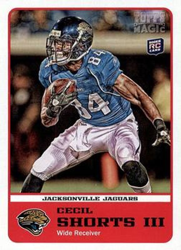 The Cecil Shorts III 2011 Topps Magic Rookies #29 Base card is 1 of 3 Cecil Shorts III's card variations in the 2011 Topps Magic Rookies set being tracked by Sports Card Investor, including Autographs, and Autographs - Black Border /1.