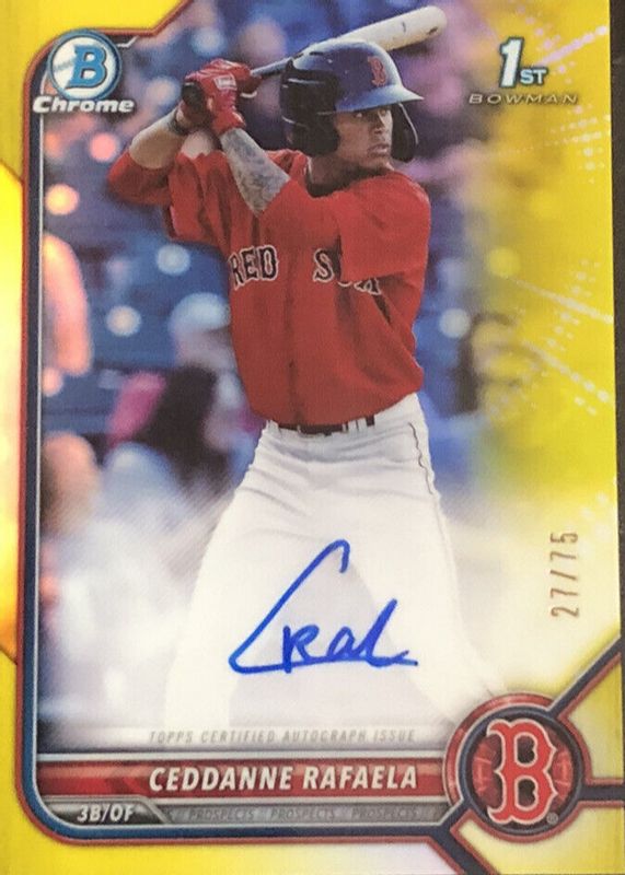 Best Prices Available For Sale of Ceddanne Rafaela 2022 Bowman Chrome #CPA-CRL Prospect Auto - Yellow Refractor /75 (1st)