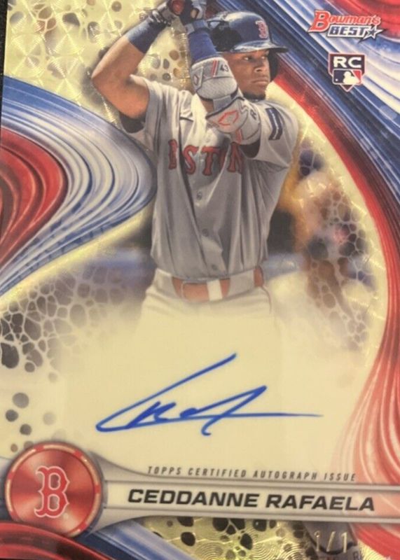 The Ceddanne Rafaela 2024 Bowman's Best #B24-CR Best of 2024 Autographs - Superfractor /1 Rookie card in Raw condition has not changed in price in the last 30 days and was last sold for $1,000.00 .