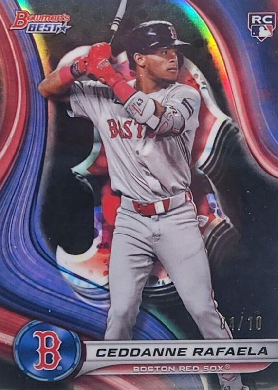 This card is 1 of 32 Ceddanne Rafaela's card variations in the 2024 Bowman's Best set being tracked by Sports Card Investor, including Base, Refractor, Wave Refractor, Mini-Diamond Refractor /299, and Purple Mojo Refractor /250.