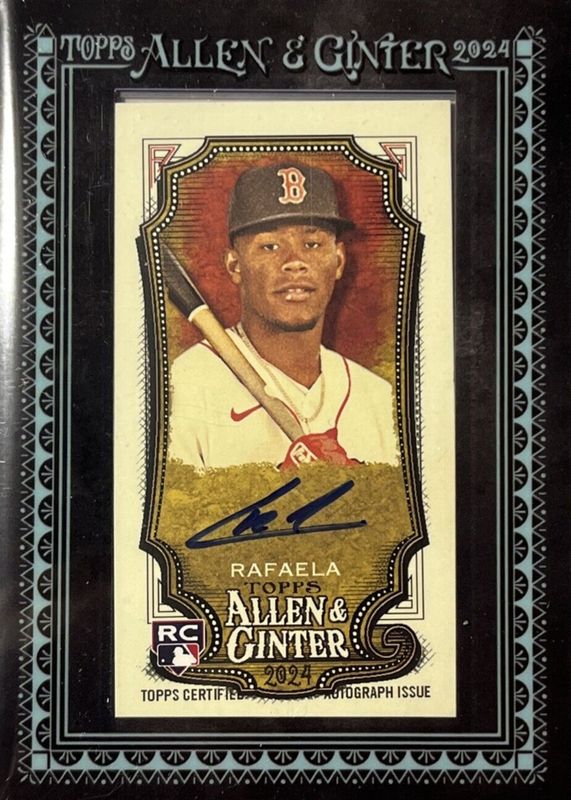 The Ceddanne Rafaela 2024 Topps Allen & Ginter #MA-CR Framed Mini Auto - Black Frame /25 Rookie card in Raw condition has not changed in price in the last 30 days and was last sold for $21.66 .
