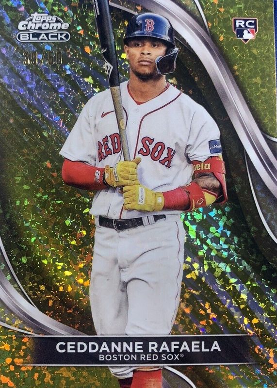 This card is 1 of 25 Ceddanne Rafaela's card variations in the 2024 Topps Chrome Black set being tracked by Sports Card Investor, including Base, Rookie Variation, Refractor /199, Purple Mini-Diamond Refractor /150, and Green Refractor /99.