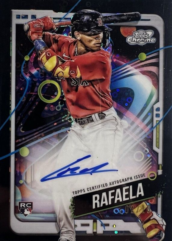The Ceddanne Rafaela 2024 Topps Chrome Cosmic #CCA-CR Autographs - Black Eclipse Refractor /10 Rookie card in Raw condition has not changed in price in the last 30 days and was last sold for $203.51 .