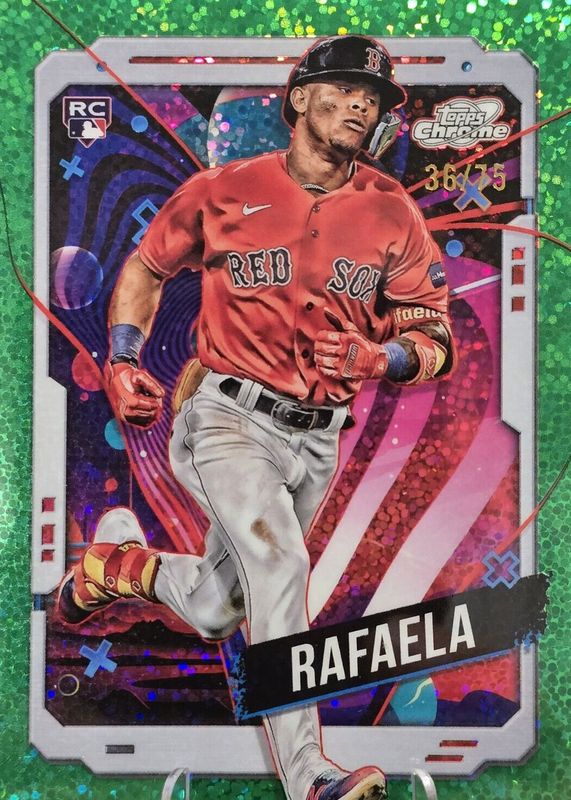 The Ceddanne Rafaela 2024 Topps Chrome Cosmic #43 Green Space Dust Refractor /75 Rookie card in Raw condition has not changed in price in the last 30 days and was last sold for $10.00 .