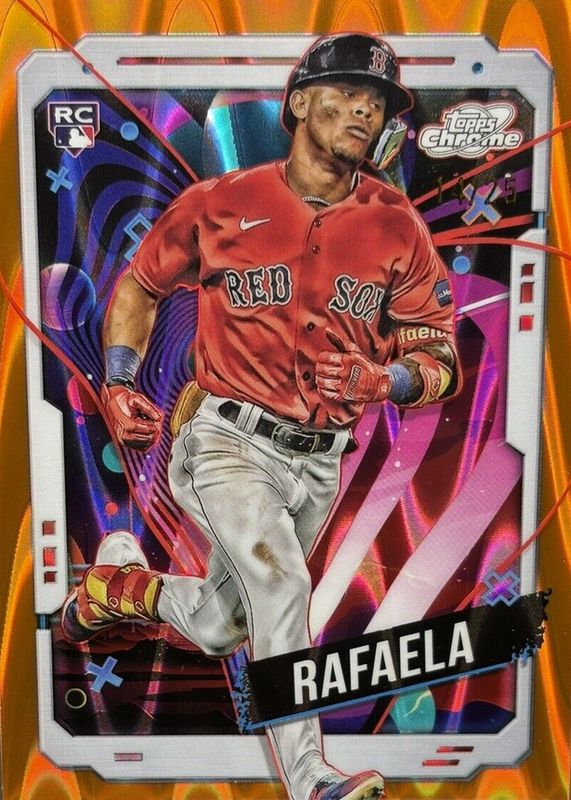 The Ceddanne Rafaela 2024 Topps Chrome Cosmic #43 Orange Galactic Refractor /25 Rookie card in Raw condition has not changed in price in the last 30 days and was last sold for $26.00 .