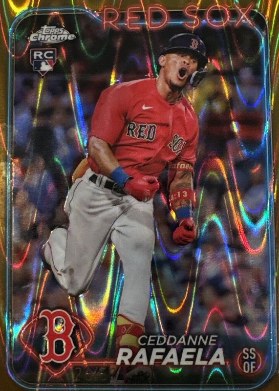 The Ceddanne Rafaela 2024 Topps Chrome #118 Gold Wave Refractor /50 Rookie card in Raw condition has not changed in price in the last 30 days and was last sold for $39.99 .