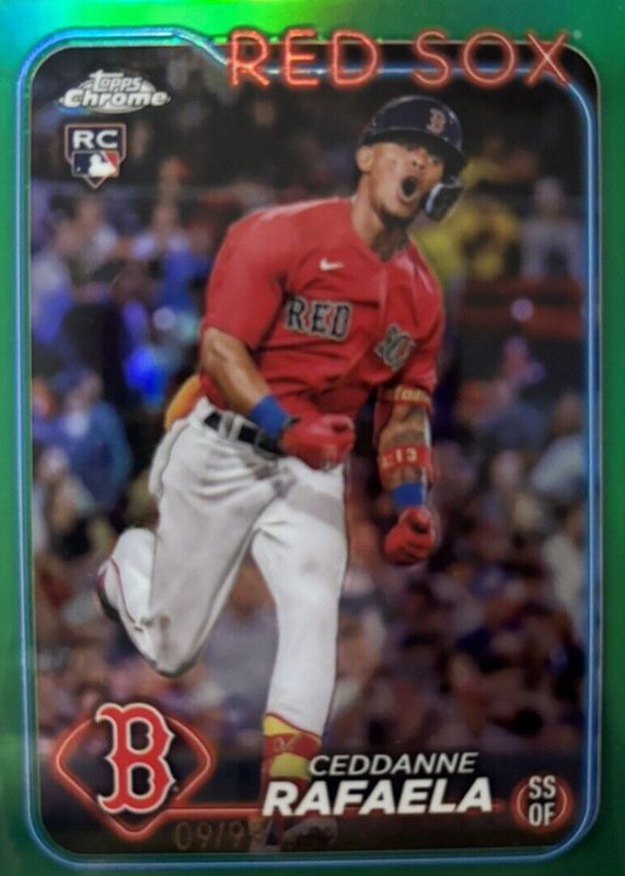 The Ceddanne Rafaela 2024 Topps Chrome #118 Green Refractor /99 Rookie card in Raw condition has not changed in price in the last 30 days and was last sold for $13.00 .