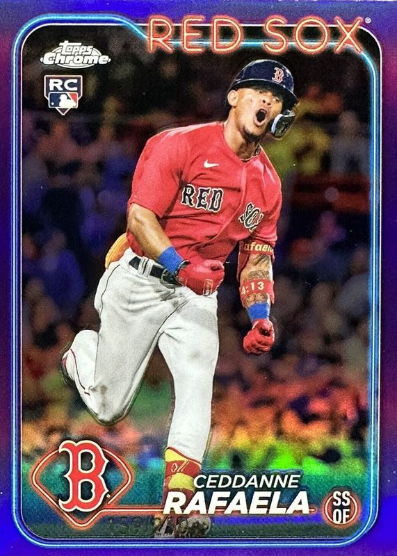The Ceddanne Rafaela 2024 Topps Chrome #118 Purple Refractor /250 Rookie card in Raw condition has not changed in price in the last 30 days and was last sold for $9.97 .