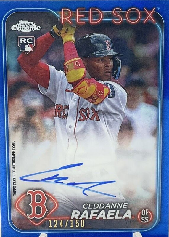 The Ceddanne Rafaela 2024 Topps Chrome #RA-CR Rookie Autographs - Blue Refractor /150 card in Raw condition has not changed in price in the last 30 days and was last sold for $51.88 .