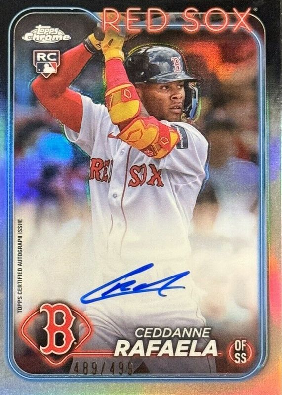 The Ceddanne Rafaela 2024 Topps Chrome #RA-CR Rookie Autographs - Refractor /499 card in Raw condition has not changed in price in the last 30 days and was last sold for $55.00 .