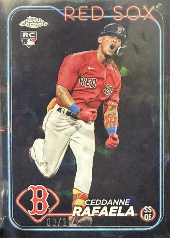 The Ceddanne Rafaela 2024 Topps Chrome Sapphire Edition #313 Black /10 Rookie card in Raw condition has not changed in price in the last 30 days and was last sold for $149.99 .