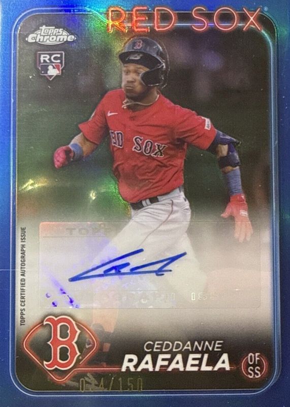 The Ceddanne Rafaela 2024 Topps Chrome Update #AC-CR Autographs - Blue Refractor /150 Rookie card in Raw condition has not changed in price in the last 30 days and was last sold for $56.05 .