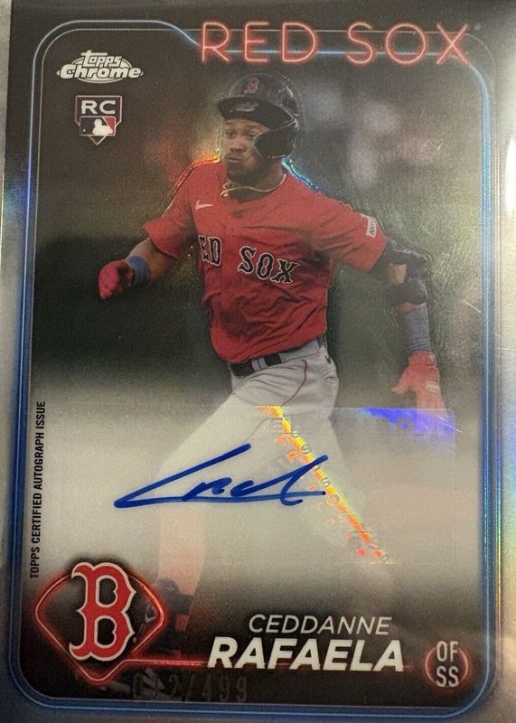 The Ceddanne Rafaela 2024 Topps Chrome Update #AC-CR Autographs - Refractor /499 Rookie card in Raw condition has not changed in price in the last 30 days and was last sold for $27.00 .