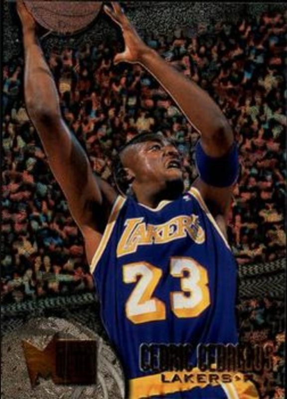 The Cedric Ceballos 1995 Metal #52 Base card is 1 of 3 Cedric Ceballos' card variations in the 1995 Metal set being tracked by Sports Card Investor, including Silver Spotlight, and Metal Force.