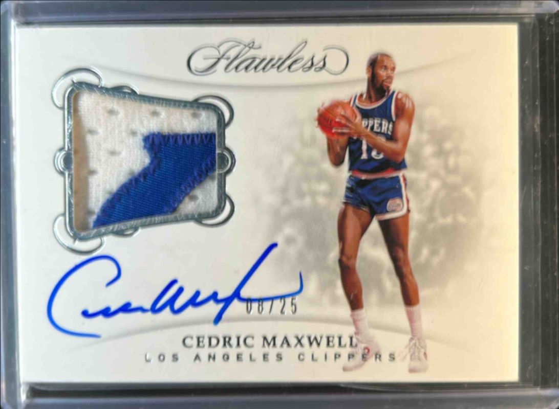 The Cedric Maxwell 2018 Flawless #PA-CMX Flawless Patch Autographs /25 card is 1 of 26 Cedric Maxwell's card variations in the 2018 Flawless set being tracked by Sports Card Investor, including Distinguished Autos /25, Flawless Autographs /25, Legendary Scripts /25, Premium Ink /25, and Legendary Scripts - Pink /20.