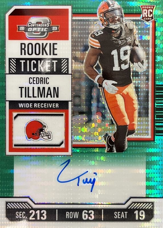 2023 Contenders Optic Cedric Tillman Green Pulsar Rookie Ticket RPS Auto #13/30