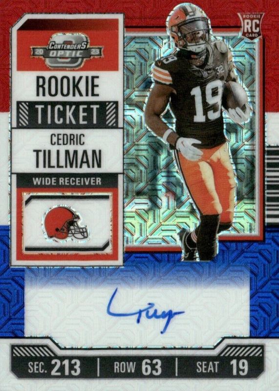 Cedric Tillman 2023 Contenders Optic #104 Rookie Ticket Auto - Red White Blue /13 RAW Price Guide