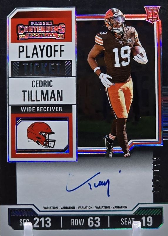 This card is 1 of 28 Cedric Tillman's card variations in the 2023 Contenders set being tracked by Sports Card Investor, including Rookie Ticket Auto, Rookie Ticket Auto - Opening Kickoff Ticket, Rookie Ticket Auto - Red Zone Ticket, Rookie Ticket Auto - Ticket Stub (/19), and Rookie Ticket Auto Variation.
