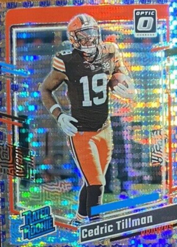 This card is 1 of 54 Cedric Tillman's card variations in the 2023 Optic set being tracked by Sports Card Investor, including Base, Blue Hyper, Blue Scope, Green Hyper, and Green Velocity.