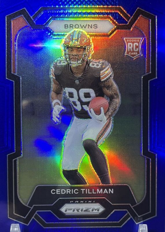 The Cedric Tillman 2023 Prizm #321 Blue /(SSP) Rookie card in Raw condition has not changed in price in the last 30 days and was last sold for $5.00 .