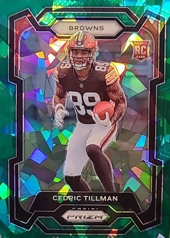 This card is 1 of 78 Cedric Tillman's card variations in the 2023 Prizm set being tracked by Sports Card Investor, including Base, Disco, Green, Green Wave, and Lazer.