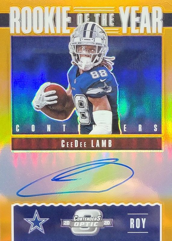 The CeeDee Lamb 2020 Contenders Optic #ROY14 Rookie of the Year Contenders Autographs - Orange /50 card in Raw condition has not changed in price in the last 30 days and was last sold for $140.00 .