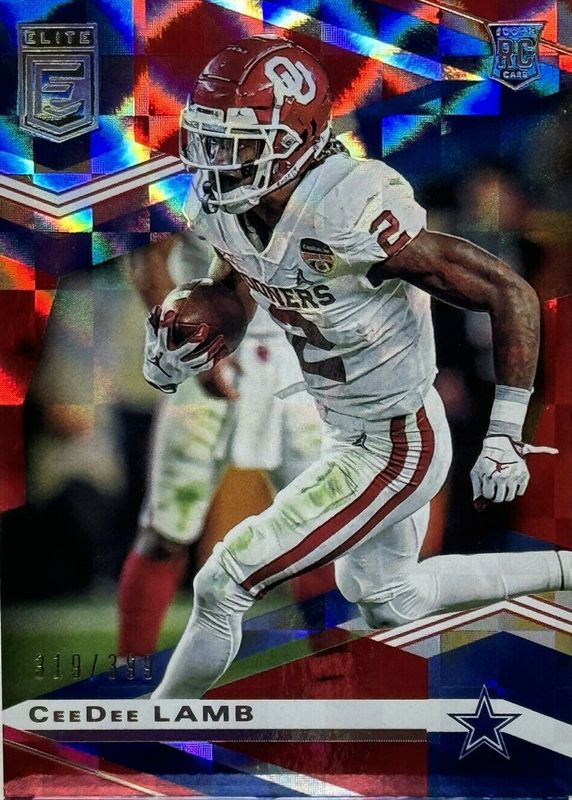 This card is 1 of 17 CeeDee Lamb's card variations in the 2020 Elite set being tracked by Sports Card Investor, including Base Rookie /799, Green, Pink, Purple /99, and Razzle Dazzle /(SSP).