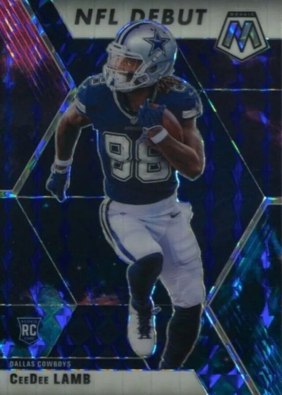 This card is 1 of 74 CeeDee Lamb's card variations in the 2020 Mosaic set being tracked by Sports Card Investor, including Base, NFL Debut, Choice Red & Green, Green, and NFL Debut - Choice Red & Green.