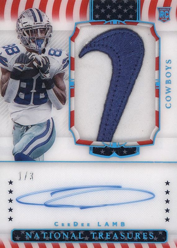 CeeDee Lamb 2020 National Treasures #164 Rookie Patch Auto - Stars & Stripes Premium /3 RAW Price Guide